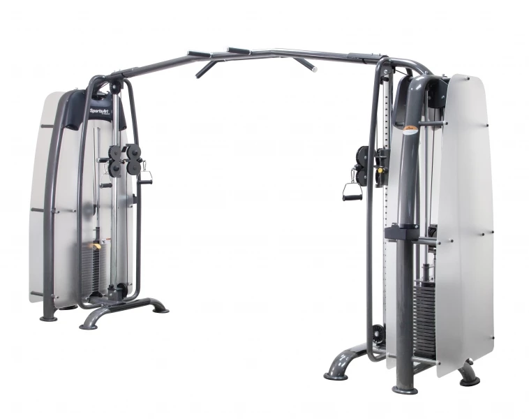 Тренажер оснащен четырьмя тяговыми блоками: двумя верхними и двумя нижними. Использование рукояток для тяг, а также приспособлений различной конфигурации, можно выполнять большое количество различных упражнений.